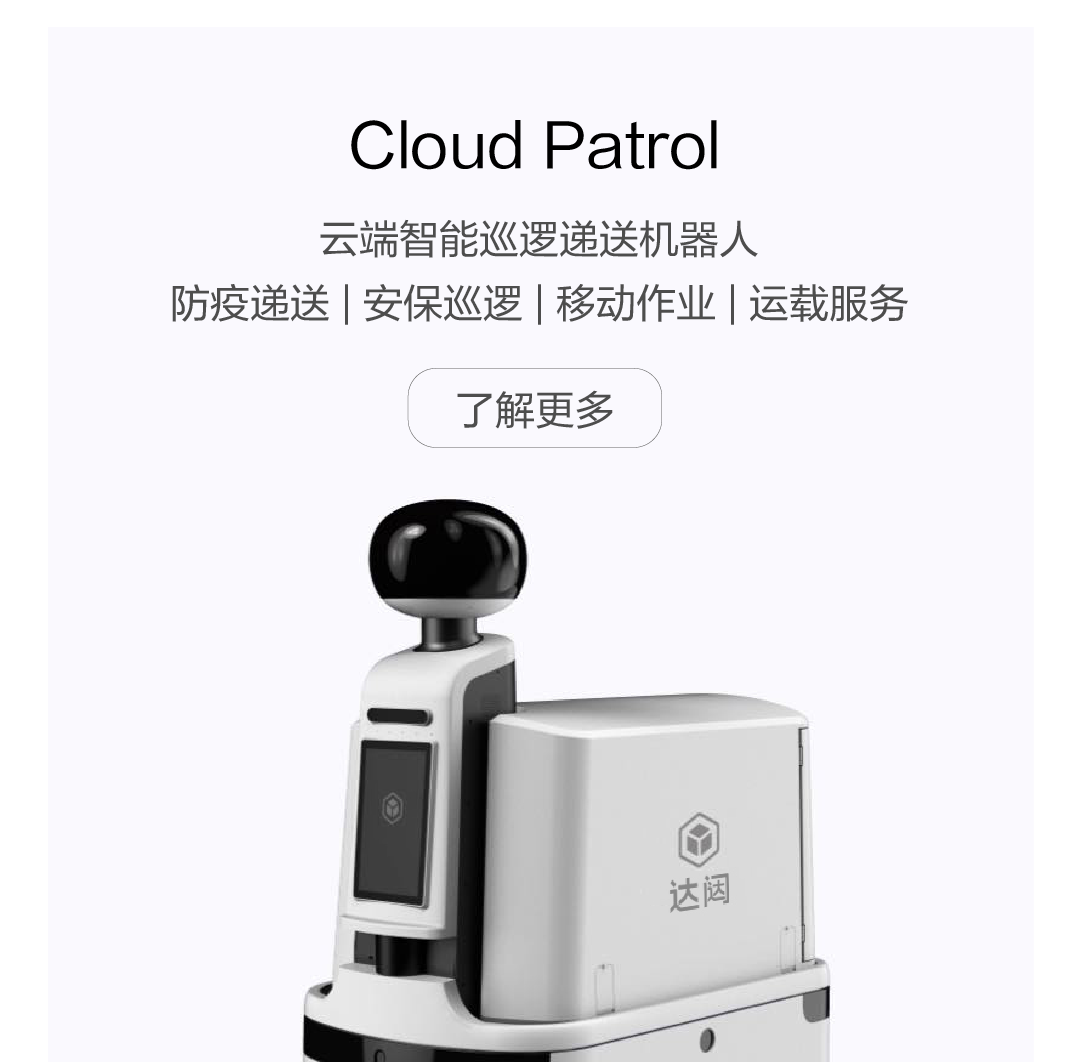 云端智能巡逻递送机器人 防疫递送 | 安保巡逻 | 移动作业 | 运载服务 了解更多